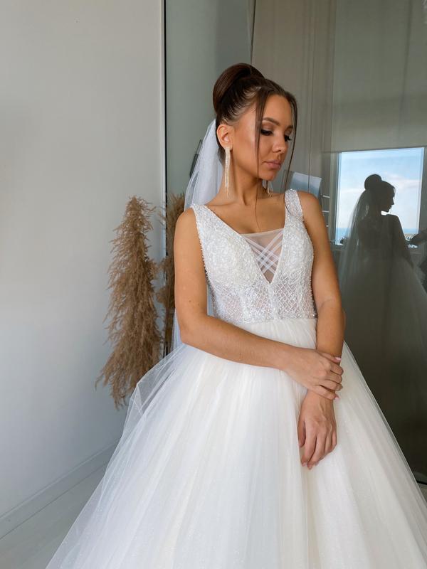 Свадебное платье. После химчистки. Венчания в нем не было. Размер хс-с. Ручная вышивка бисером. При освещении очень красиво переливается. Цвет белый с теплым оттенком. Второго такого больше нет. Эта модель эксклюзивная. В подарок отдам длинную фату , которая так же мерцает, хотя покупала ее отдельно за 2000грн.