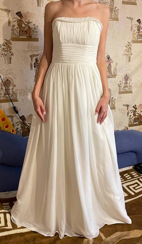 Свадебное платье Длина - 130, длина от талии - 103, минимальная талия - 32*2. Размер S, M Есть небольшое пятно на подложке платья ( см. фото )