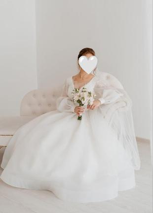 Продаю свадебное платье, расшитое бисером, застегивается на красивые пуговицы. Одета была раз, после свадебной съемки не было.Стан новой, после химчистки( только нуждается в глажке.) Платье элегантное и стильное, очень удобное и легкое, корсет позволяет свободно дышать. Размер S-M. Кольца и корзинки на сладкоелугу в подарок. У меня рост 158, но я имела еще высокий каблук. Цвет: нежно молочный. Купила во Львове в салоне за 14000 грн. Продаю за 9000 грн. возможен небольшой торг.