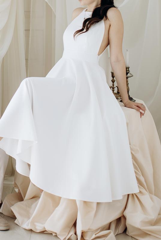 Дуже гарна елегантна сукня, на розмір S (ОГ 83-88, ОТ 63-68, ОБ 93-97) Стан чудовий З недоліків є декілька маленьких непомітних затжечок Дуже зручне, вишукане Красива спинка та доповнюється гарним бантом