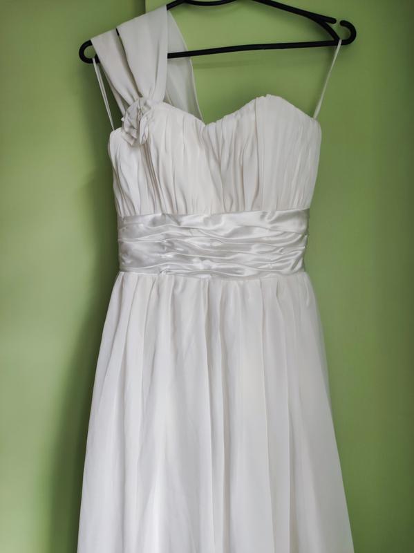 очень красивое платье, сзади шлейф, можно на фотосессию, можно на роспись или венчание. цена символична, чтобы не лежать. замеры: длина спереди 155, сзади 2 метра. пояс регулируется лямками, в данном случае на минимум затяните, то в поясе 30, а грудь 35, но сам корсет себе регулируешь под себя. грудь не больше 2 размера. подойдет на девушку размер хс и маленький м не больше.