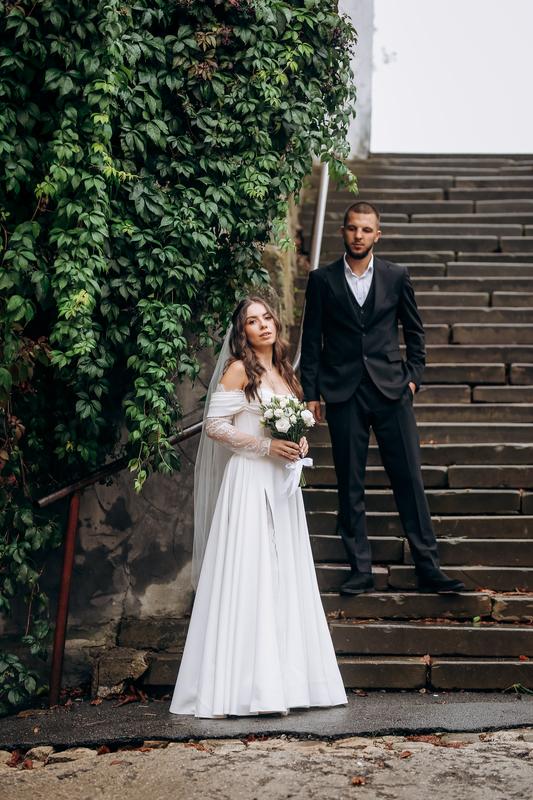 Белое свадебное платье на длинных рукавах. Прекрасный вариант для особого дня в вашей жизни. Легкая, не очень объемная, не требует кругов. Платье было сшито на рост 165. В хорошем состоянии, однако есть незначительная стрелка на кружеве где разрез (не является проблемой, ведь разрез используется только для фото). Возможен торг. Отправка новой почтой или укр. по почте.
