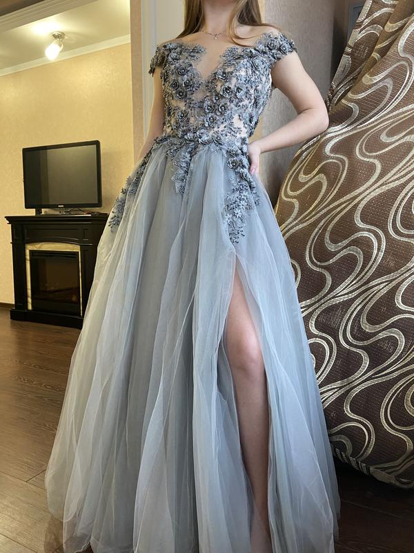 Сукня на випускний вечір у розмірі XS Була пошита під замовлення, в єдиному екземплярі Стан ідеальний 6 слоїв фатину, ззаду корсет на шнурівці Є додаткове відео, пишіть