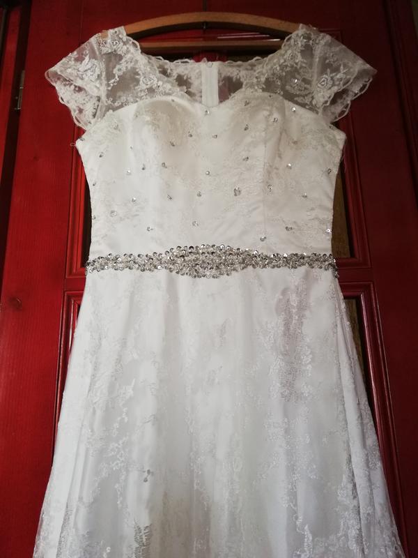 Сукня в ідеальному стан, молочного кольору. Одягала раз в ЗАКС. Без вінчання. Потребує прання. Розмір с, маленька м.