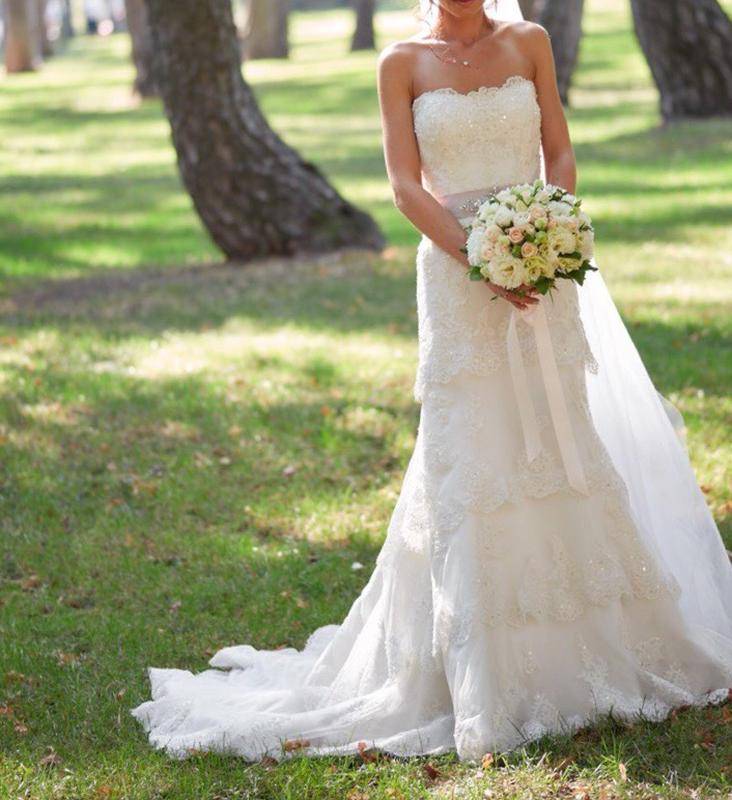 Свадебное платье со шлейфом в комплекте пояс,чехол. Покупалось в салоне в идеальном состоянии, сразу прошло химчистку. Силуэт рыбка, вшитый Пуш Ап,вышивка кристаллы Swarovski,кружево. Возможна примерка в Харькове. Фотографии если надо ещё могу в личку кинуть и видео.Торг уместен.Фата в подарок