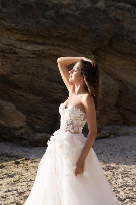 Размер XS - S. Идеальное свадебное платье с ультрамодным прозрачным корсетом, расшитым 3Д кружевом, который смоделирует фигуру и подчеркнет все достоинства. Юбка платья с персиковым подтоном и небольшим шлейфом. Откорректирую длину юбки под Вас! В подарок сошью классическую фату или повязку на ножку. На выбор!)