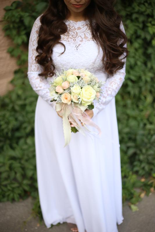 Продам свадебное платье в идеальном состоянии. Верх на корсете из гипюра. Юбка шифон + подкладка. Завышенная талия. Одевалось один раз на фотосессию. Размер L, но лучше ориентироваться по меркам. Замеры вышлю по запросу. Цвет белоснежный. (первая фотография качественная, так как сделана на проф камеру) Есть ещё фото со свадьбы, дабы разглядеть платье получше. Дефектов нет! Состояние НОВОГО