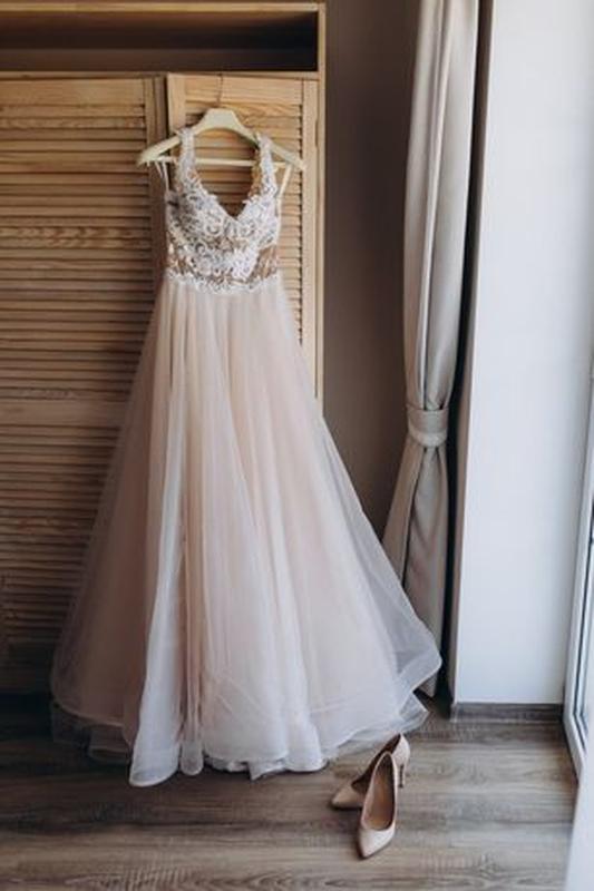 Продам весільну сукню Pollardi. Колір beige .Одягалось 1 раз, стан відмінний, колекція 2019 року, бренд-Ida Torez, колекція (назва): Soul of the Sea, матеріал: фатин, наявність шлейфа: є (підстьобується ззаду до плаття), силует: а силует. В комплекті до сукні йде оригінальний чохол і кільця під плаття. За параметрами та детальною інформацією в особисті повідомлення. Купувалося за 800 $. Плаття дуже зручне, легке і повітряне, легко одягається.