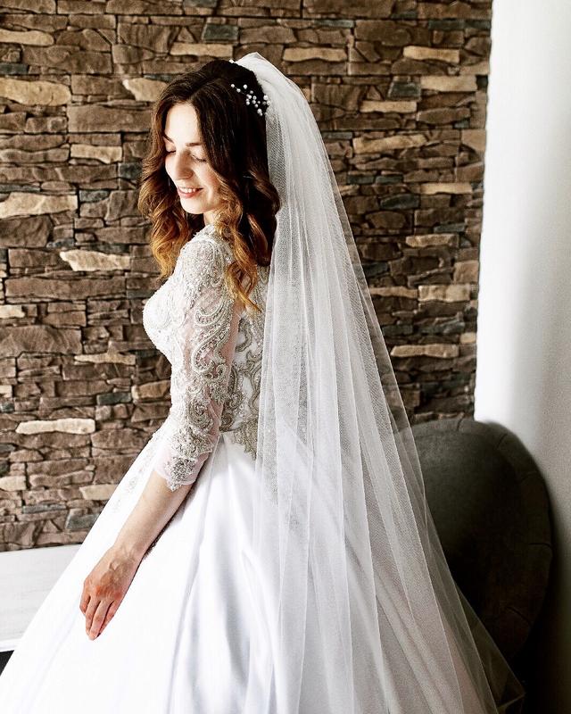 Розмір s/m, сукні присутній шлейф,одягнена один раз,куплена за 850$,продається з усіма додатками,фатою, колами та фірмовим чохлом.
