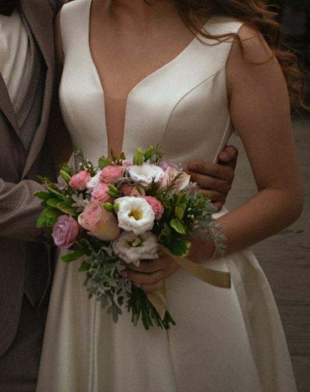 Как новое 💯Цвет шампань 🥂 Шикарное просто! Стильное, классическое и изысканное👌 Привлекает много внимания 🌼Для настоящей леди 🤗 Пояс снимается, есть карманы, подкладка. Плотный атлас🌺Смотрится роскошно и богато 💰За цену можем договориться ✌️Любые вопросы, обращайтесь 🌹 Длина 151 см Грудь 35 см Талия 31 см