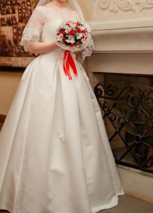 тканина атлас, корсет на шнурівці, оздоблення мереживом на талії симпатичний бантик 👍є 2 абсолютно не помітних кишені( дуже зручно) 👍є під'юбник на 2 кільця, але і без нього сукня виглядає дуже красиво 👍на фото поверх сукні надіто мереживне болеро, яке на спинці застібається на гудзики-перлинки 👍плаття не венчаное 🔥під'юпник та болеро в подарунок параметри моделі на фото 86/60/90 зріст 159 см, каблук 10 см колір - айворі