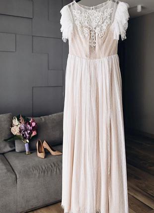 Свадебное платье Katrina куплено в салоне Ariamo г.Киев за 19 тыс. модель 2020 года в бохо стиле Видоизменен рукав, укорочено под рост 165+ 7 см каблук Размер Европа 38 {м} или 44-46 После химчистки, абсолютно идеальное состояние Молния на корсете + пуговицы на спине Реальному покупателю в подарок украшения для волос 🌸 Возможна опция посуточной аренды