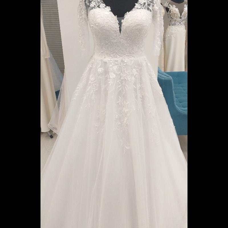 Супер свадебное платье, цвет-белый,лиф-Vобразный вырез,длинным рукавом, с гипюром,юбка-пышная,с блеском,фатин,размер 56(возможен пошив в любом размере)