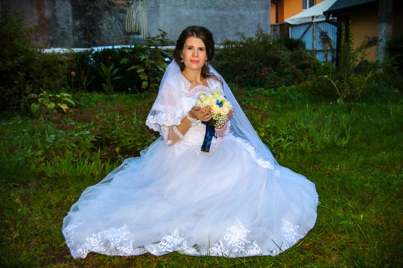 Стан сукні ідеальний. Одягалася лише раз. Без дефектів. Після чистки. Розмір 44-46. Ріст 165, може піти і на більший ріст , бо для мене трохи довга була, враховуючи, ще те, що взувала ботінки на не високому каблучку. Нижній шар спідниці, а також верх виробу з атласа, всі інші шари з фатіна, самий верхній обшитий мереживом. Вдягала її коли була на 5-му місяці вагітності, корсет взагалі не давив на відмінну від інших суконь які міряла на корсеті. Круг в подарунок