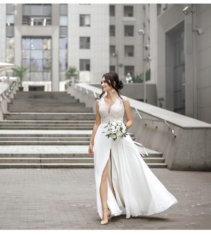 Продам свадебное платье , одевалось только для росписи и для фотосессии. Мой рост 176 {на фото +каблук ~10 см}. Размер подходит на S/M. Сзади затягивается ленточкой, корсет не грубый . Сбоку разрез. Нет никаких дефектов.