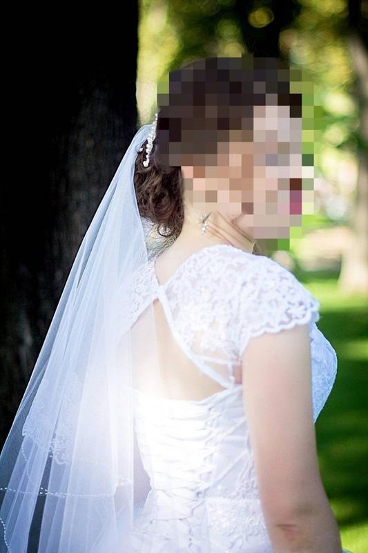 Состояние нового, было одето один раз на свою свадьбу, не венчано. Платье после химчистки. Размер 40-46 На рост 163 см + 10 см каблук, можно и более. Сзади корсетом, регулируется шнуровкой.