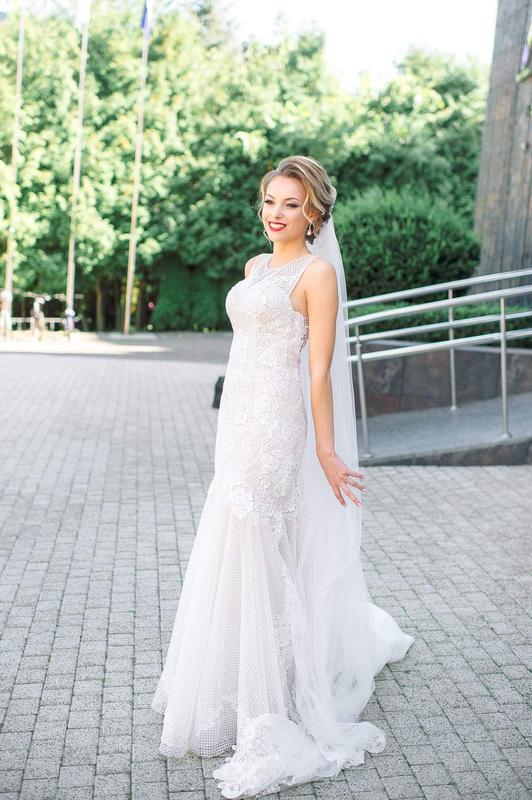 Неперевершена сукня Daineriss від Eva Lendel є завжди стильним й актуальним вибором для справжніх модниць. Фасон - рибка, тканина - атлас з мереживом, від середини бедра розширюється, переходячи у шлейф (який можна підчепити, фіксується гудзиками), колір - капучино/айворі. Стан ідеальний, після хімчистки, одягалася всього 1 раз. Підганялася під ріст 168см(+каблук), параметри: 84-63-90.