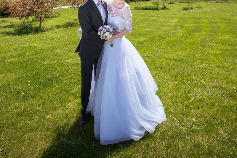 Продам свадебное платье. ⠀ 34-36 размер. ⠀ А-силуэт. Есть подъюбник с кольцами, но красиво смотрится и без него. Юбка многослойная фатиновая. Без шлейфа. Сзади фиксация на ленты (корсет). ⠀ К нему дополнительно идёт кофточка с рукавами, расшитая бисером (хорошо видно на последних фото). Можно надевать сверху или носить платье без неё. Застегивается на маленькие пуговки сзади. ⠀ На фото рост 170 см + каблук 10 см. ⠀ Надевалось один раз, после было в химчистке. В идеальном состоянии, никаких пятен или других дефектов нет. ⠀ Не венчано.