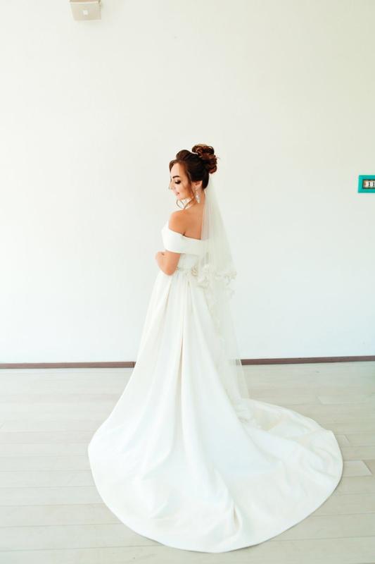 Покупалось в салоне , состояние идеальное . Фата в подарок . Дорогой атлас . По необходимости можно расшить . Актуальная модель . Шлейф , разрез на ножке . Есть карманы . Подойдёт на ХС - М . Отдаю за символическую цену, покупалось очень дорого . В этом платье вы будете настоящей принцессой.