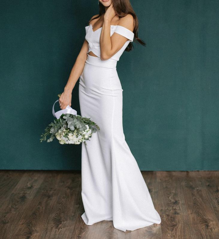 Размер s , ткань тянется , небольшой шлейф, состояние идеальное , пятен на шлейфе и платье нет ,
