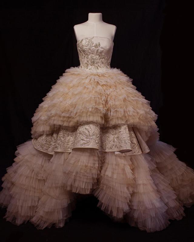 Новое свадебное платье, созданное в единственном экземпляре, из многослойного гофрированного тюля, с аппликацией и ручной вышивкой, нижняя объёмная юбка является съемной. Размер регулируется за счёт шнуровки. Объём груди от 86 см, есть возможность добавить дополнительную чашечку. Объём талии от 65 см
