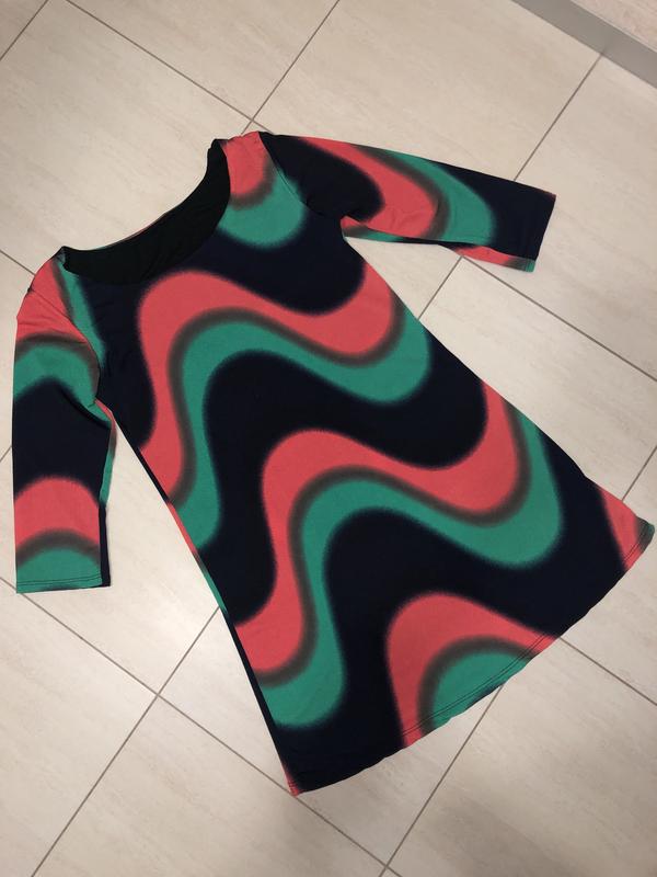 Яскрава стрейчова туніка, стан нової , S/M, заміри на фото. Верх підшитий трикотажним топом. Не потребує прасування . За певних параметрів ( до 55 кг ріст 168 ) можна одягнути як міні сукню )