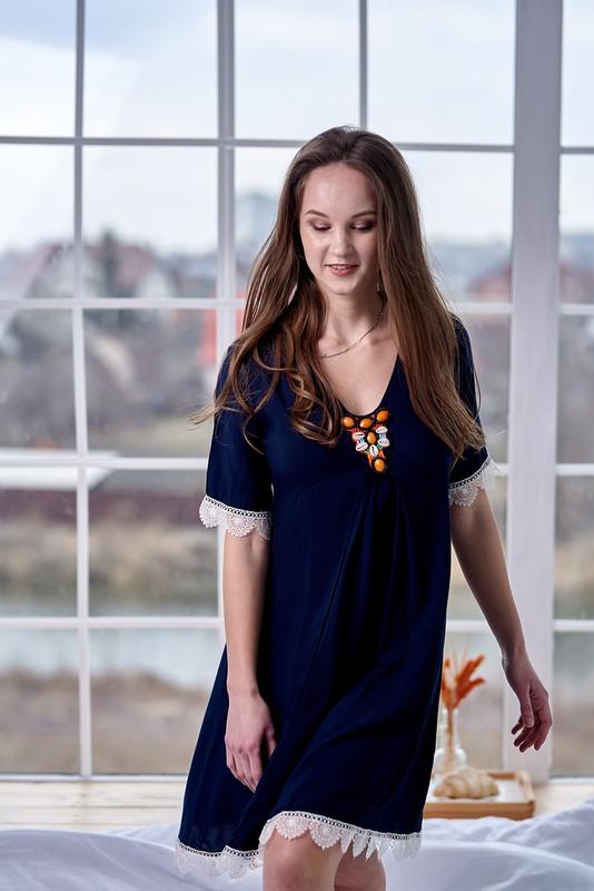 0132 Жіноча туніка Effetto синій. Тип моделі: Туніка. Склад : 100% Бавовна.