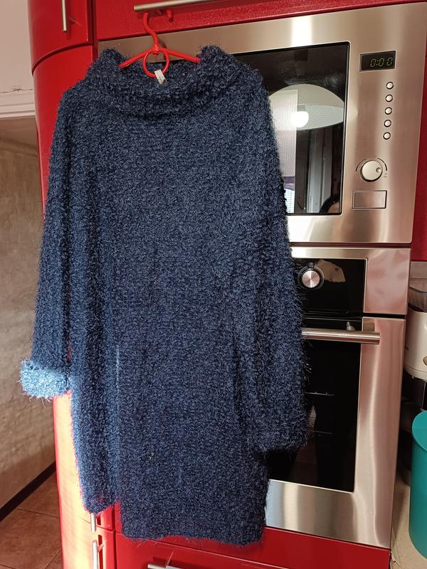 Очень теплое,не колется хоть и с люрексовой нитью.Мягкое под букле.Цвет синий.