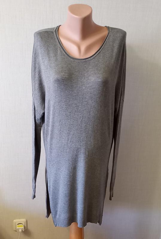 Продам туніку плаття Atmosphere, сірого кольору, трикотаж, склад 82% віскоза, 16% нейлон, 2% еластан. ПОГ 56 см, рукав від шиї 82 см, До низу завужене, по боках блискавки, довжина спереду 87 см, довжина ззаду 96 см.