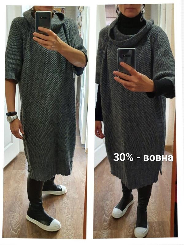 Тепла фактурна сукня туніка NEXT, р.M-XL Тепла сукня туніка NEXT фактурної в'язки, р.M-XL У новому стані. Можна одягати на сорочку чи гольф. 70% акрил, 30% вовна. Заміри у спокійному стані: ПОГ-61 см, довжина -90 см, висота хомута-16 см, ширина хомута-31 см, рукав-43 см. Примірка на манекені XS розміру