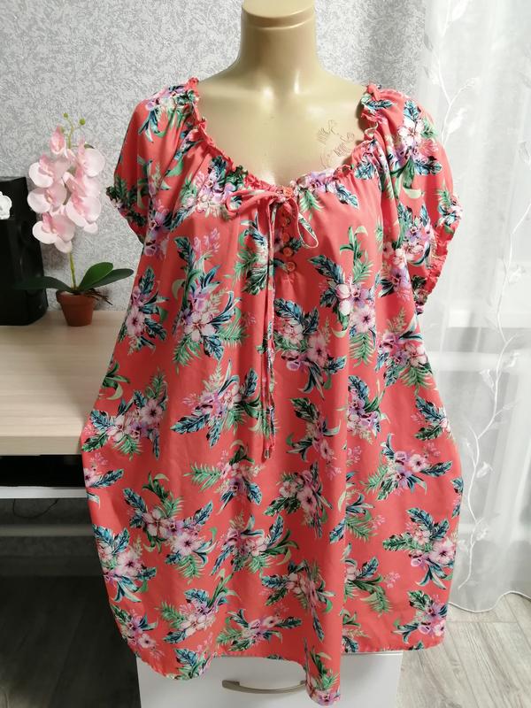 Жіноча помаранчева з квітами туніка з поліестру, великого розміру 30-32,5XL-6XL.Маде ін Індія. В гарному стані. Довжина 87, ПОГ-81,ДР-22,ШР-25см .