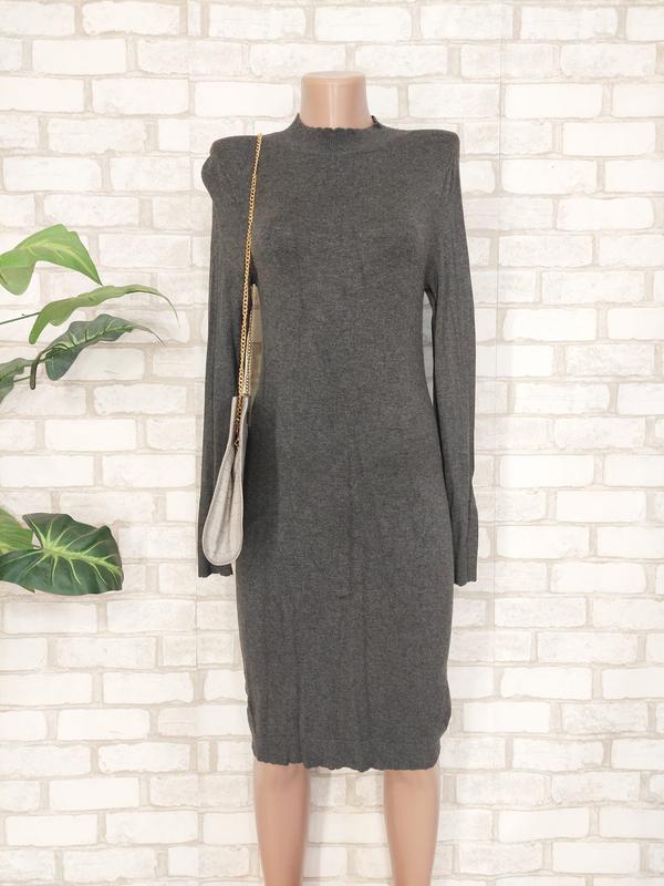 Фирменное mango трикотажное/вязанное симлуетное по фигуре серое платье-миди, размер с-м