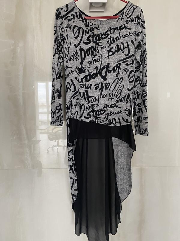 Стильна туніка ,ззаду з шифоном ,є зав’язки ,можна регулювати по фігурі