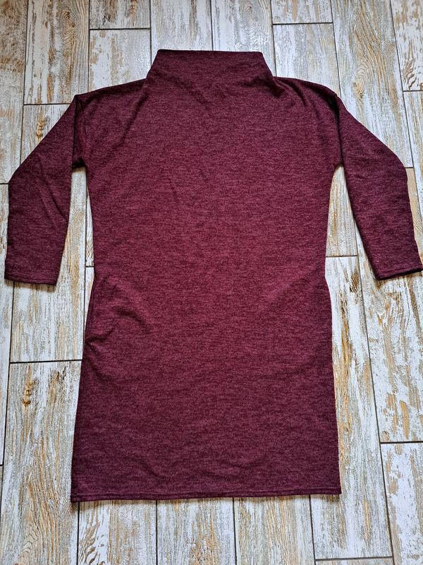 Женское платье-туника, тёплое, спереди воротник стойка, цвет бордо, по бокам швов карманы. Размер 50-52, ог-114, дл-93.