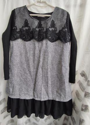 ЦІКАВА ТУНІКА З ДЕКОРОМ РУКАВА В РУБЧИК ( ЛЕГКО ТЯГНУТЬСЯ) ПОГ 55 ПОБ 63 Д 87