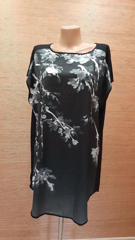 ПРИ ПОКУПЦІ ДЕКІЛЬКОХ РЕЧЕЙ-ЗНИЖКА Легенька туніка на 50-52 розмір , за біркою L , спинка -м'якенька легка віскоза , перед- м'який атлас. ПОГ 61 ПОБ 64 довжина 83