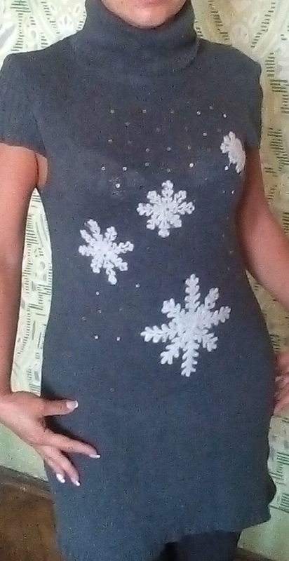 Теплая туника, платье Снежинки без рукавов прямого покроя, Сток с широким красивым воротом и актуальным узором и паетками, Хорошо тянется Длина 82 Ширина 46 -- Оплата товара производится на карточку Приватбанка. Доставка - Укрпочтой, Новой Почтой (оплата услуг транспортной компании при получении)