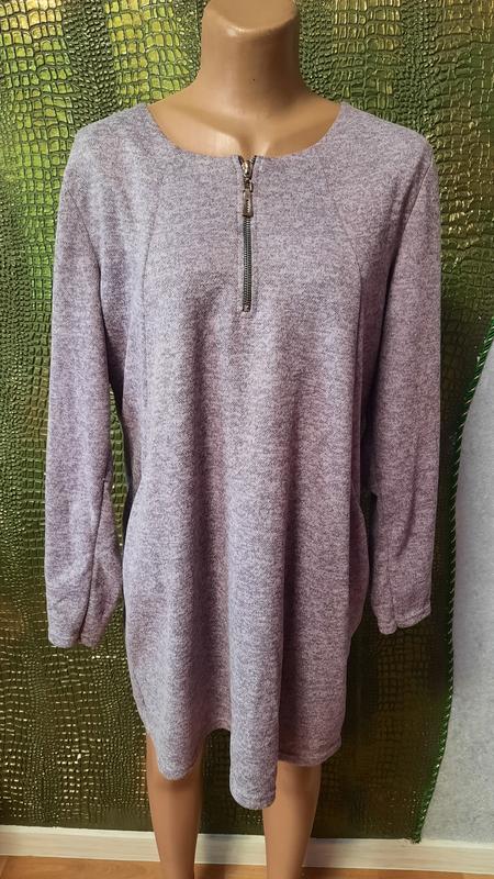 Женская туника с карманами, на молнии, с длинным рукавом. Размер:54