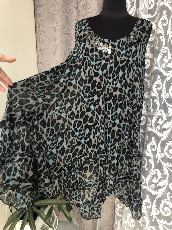 Довжина 100 см. Легка, матеріал просто струїться по фігурі. Чудова кольорова гама.