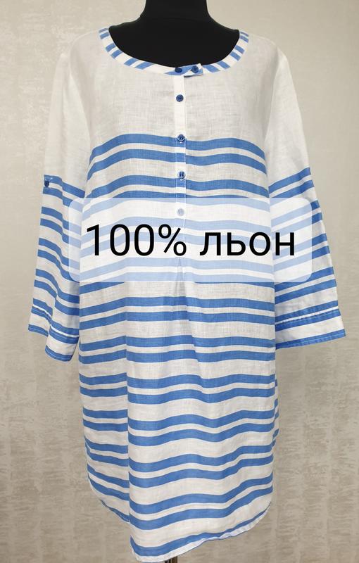 Стильная льняная туника от Clarina – динамичный, яркий и модный немецкий бренд качественной, повседневной одежды для современной женщины. Лен – родной для сливян материал. Он вызывает приятные ассоциации, отлично смотрится, не раздражает кожу, не дает аллергических реакций. Льняное полотно имеет микропоры, через которые хорошо циркулирует воздух. Ткань «дышит» лучше, чем большинство других текстильных материалов. Льняные ткани обеспечивают температурный комфорт. В жаркое время человек в льняной одежде не перегревается. Лен - очень прочный материал, который трудно стирается. Высокая смывность ткани сейчас воспринимается потребителями позитивно, потому что демонстрирует натуральность ткани, ее высокую стоимость.В давние времена лен называли шелком. Туника свободного силуэта. Ткань-тонкий качественный лен в голубую полоску. Короткая планка-застежка расположена спереди по центру. Рукав можно подвернуть и зафиксировать пуговицей. Состояние новой вещи. Размер 44 грудь 57 см талия 56 см стегна 60 см рукав 47-31 см длина изделия 82 см плечи 42 см Будет еще много фирменных вещей. Подписывайтесь! Имейте в виду, что пока вы добавляете товар в ''обранное'', кто-то его уже покупает. И вы можете потерять свой шанс приобрести понравившуюся вещь. Чем быстрее покупать сразу несколько вещей-таким образом вы экономите на доставке. При покупке пятки и больше вещей и оплате на карту продавца сразу – доставка бесплатна. Удачных и приятных покупок! 05.07.2023.