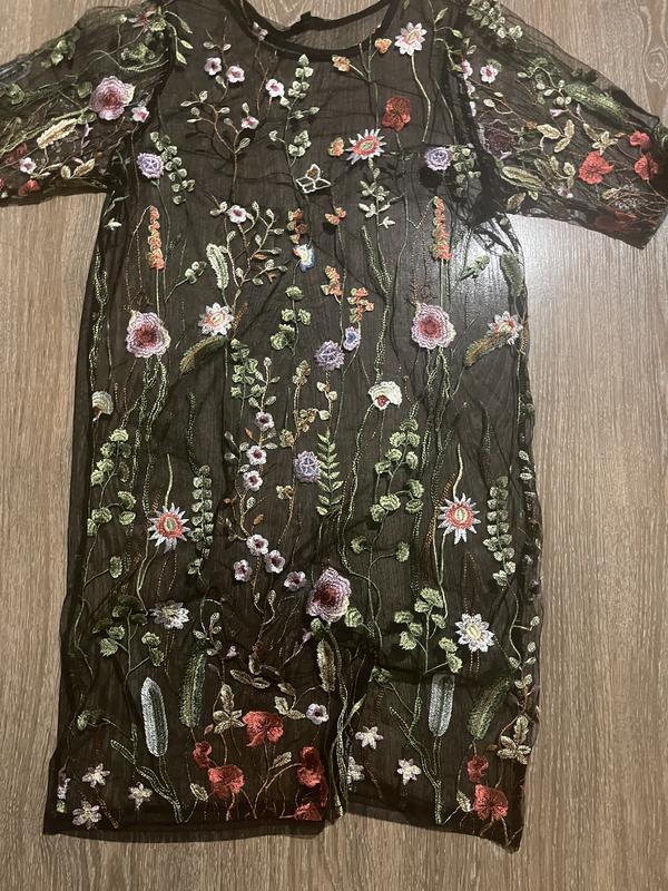 Вышивка цветами, прозрачная, на маечку , под брюки или джинсы, или под нижний сарафан черный