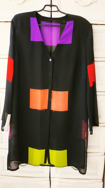 Очень классная туника. Невероятно яркая. Ткань супер, состояние новой вещи.
