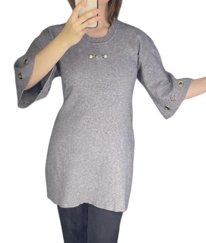 Плечи- 52см, ПОГ- 44см, ПОТ- 41см, ПОБ- 50см, длина рукава- 29см, длина туники- 79см. Трикотаж хорошо тянется и хорошо держит форму.