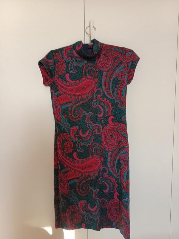 Интересное платье туника зелено красного цвета (на фото не передался цвет). Шикарно подчеркивает фигуру. Ширина 42 см, длина 90 см. На молнии сзади.