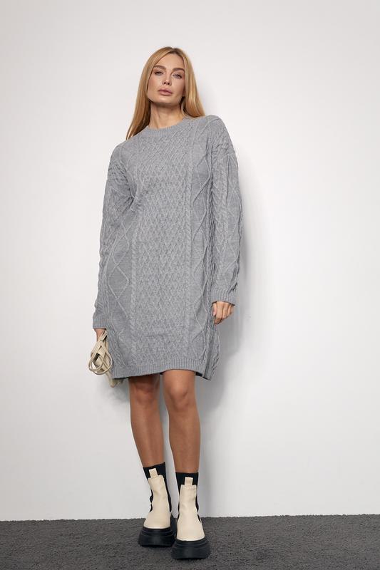 Вязаное платье-туника с узорами из косичек и ромбиков артикул: 10528
