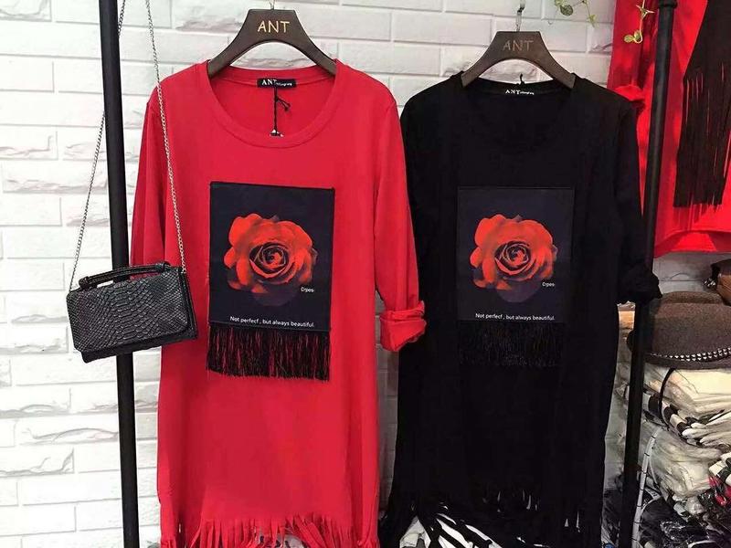 Туника с аппликацией и бахромой. Размер 44-48. Тканина трикотаж. Цвет красный, черный.