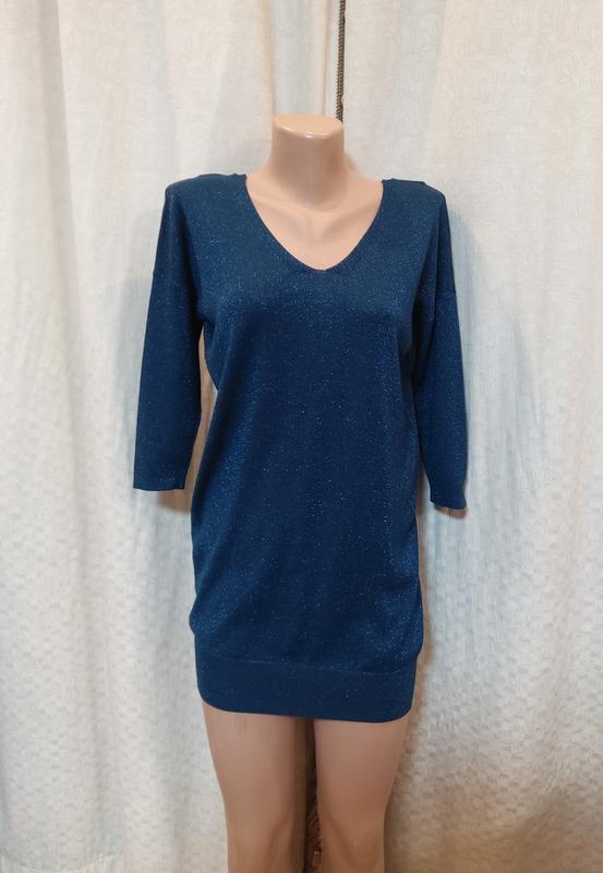 Туника нарядная, размер М. Стан отличный, недостатков нет. Цвет синий с серебристой нитью. Рост 165-170 см. Рукав 3/4. Пересылаю после оплаты на карту.