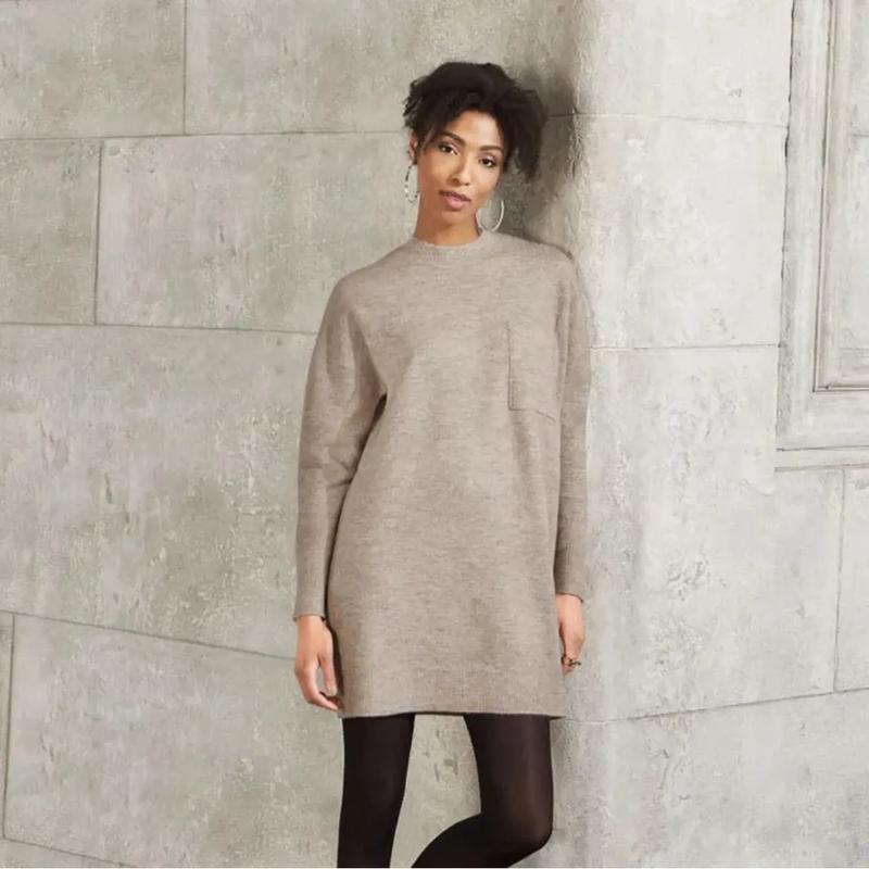 Вязаное платье-туника бежевого цвета от Esmara Размер указанный 44/46 европейский, 50/52укр Длина 88 Плечи 73 Рукав 45 Пог 70 Поб 68