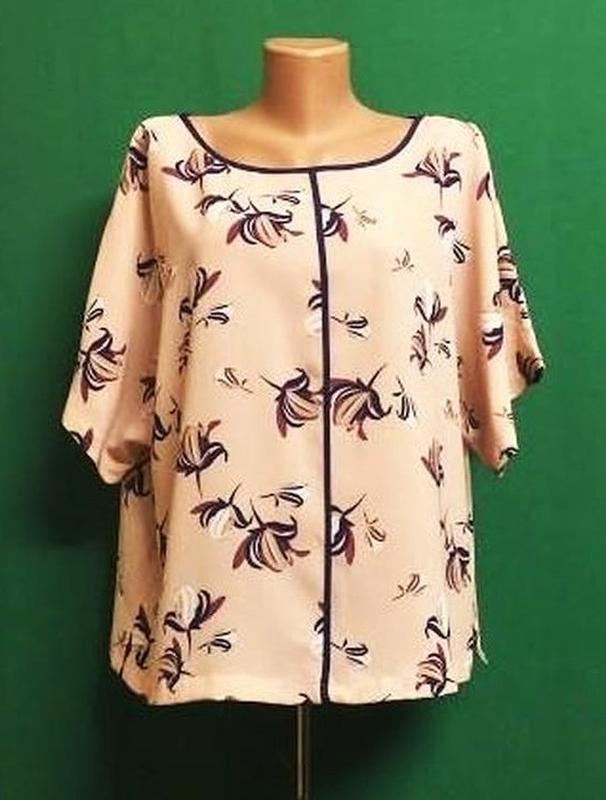 Туника M&S (Турция) - 98% Полиэстер, 2% Эластан(ткань весомая, не мнется, не просвечивается) Очень красивый основной цвет розовой пудры, кант темно синий и цветы темно синие с красным Евро размер 18 Реглан Пройм 30 см Ширина под рукавами 67 см У таліі 64 см В стегнах 64 см Длина рукава от горловины 34 см Длина спинки 58 см Нова Торгу нет