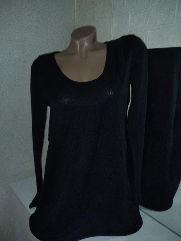 Туника черная с длинным рукавом и карманами